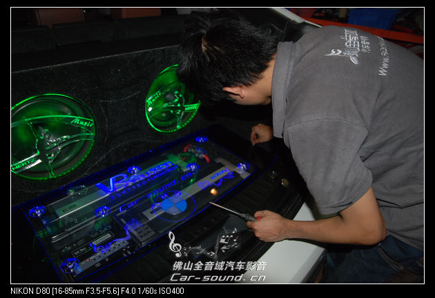 佛山全音域—宝马GT改装意大利欧迪臣功放 赫兹三分频,中低音门板倒模