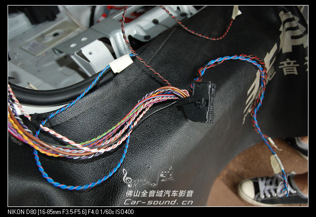 从原车功放找出前后声场的喇叭线,找出后就用喇叭线接上,然后就经过Bit ten转换成音频输出