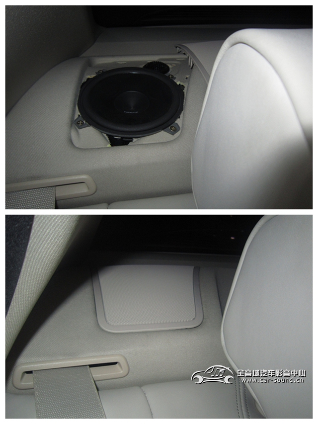 前声场法国劲浪中低音喇叭,原位安装在座椅低,安装时周围加层隔音材料,稳固兼密封,有效防止声音扩散!