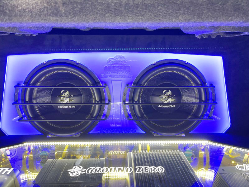 尾箱器材安装好之后,做上亚力克透明版与LED灯饰,工艺视觉更具冲击力,瞬间高大上起来。