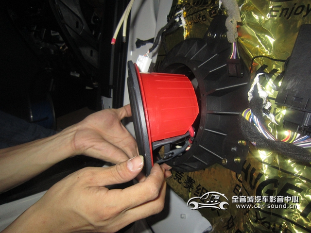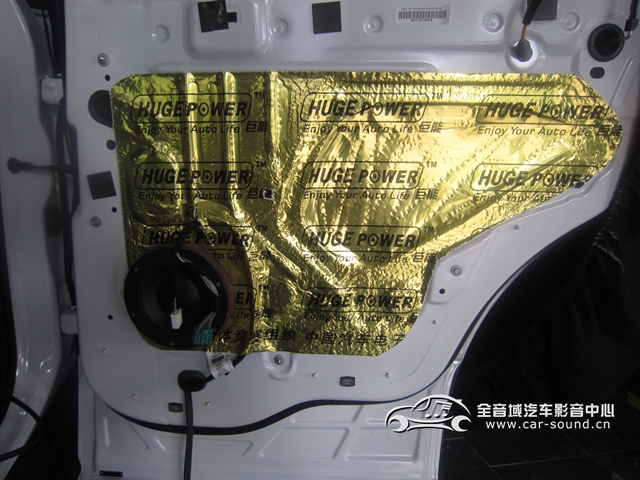 安装喇叭前,门板内层先放一块导音棉,有效防止声音扩散