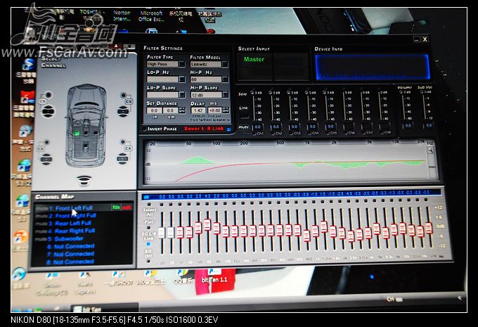 接完线后,再认真检查一次,确认无误,就开机试音了。赖总正在用电脑来调音哦!