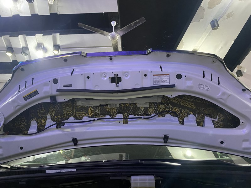 引擎盖隔音处理同样针对铁皮比较薄的部位做降噪处理,第一层同样粘贴上止震板。