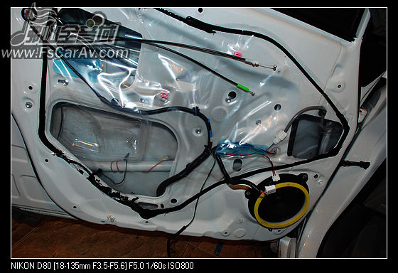 里外贴好隔音后,接着装上意大利赫兹中低音喇叭。