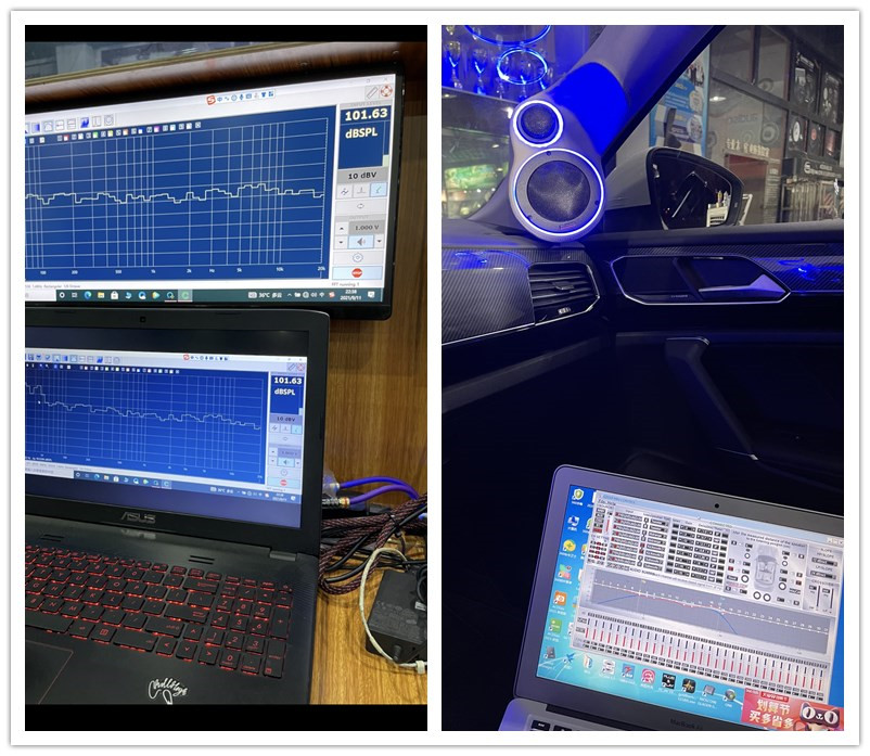 进入了交车的最后阶段裁判级别专业调音,先使用专业的频谱仪进行检测,在电脑上调试好音频曲线,代车主提车试听时,将会根据车主的要求进行微调。